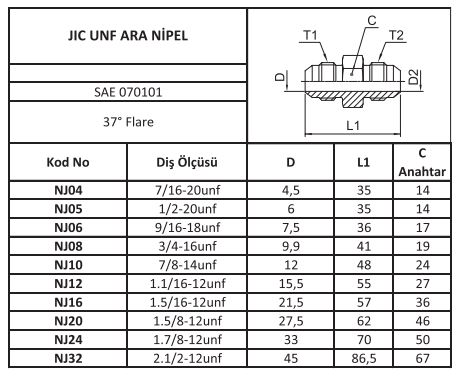 SAE 070101, 37° Flare.