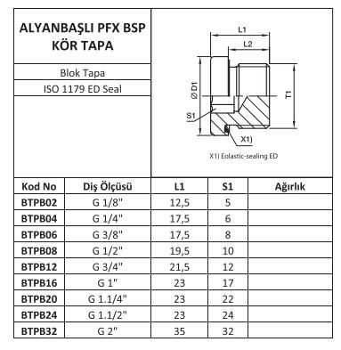Product Description: Alyanbaşlı PFX BSP Kör Tapa