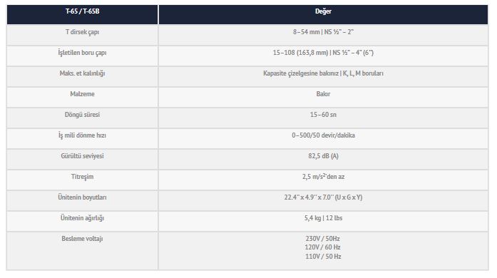 Ağır İş T-DRILL T-65, bakır borular ile ilgili T-DRILL takım ailesinde ayrıcalıklı bir üyedir. 108 mm’ye (NS 4’’) varan (hatta tercihe bağlı güçlendirme seti ile 168,3 mm’ye varan) işletilen borulardan 54 mm’ye (NS 2’’) varan kapasiteye sahip olmak sizi daha da kârlı ve rekabetçi yapacaktır. Bir T dirsek montajı ile T-DRILL bağlantısının kurulu maliyeti arasında bir karşılaştırma yapılırsa, artan kârın %70’e yaklaştığını göreceksiniz. Bu değer kullanımdaki çoğu iş gücü hesaplayıcısında belgelenmiştir.