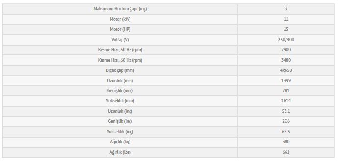 4” ‘e kadar R1-R2-R9-R13-R15 hortumları keser.