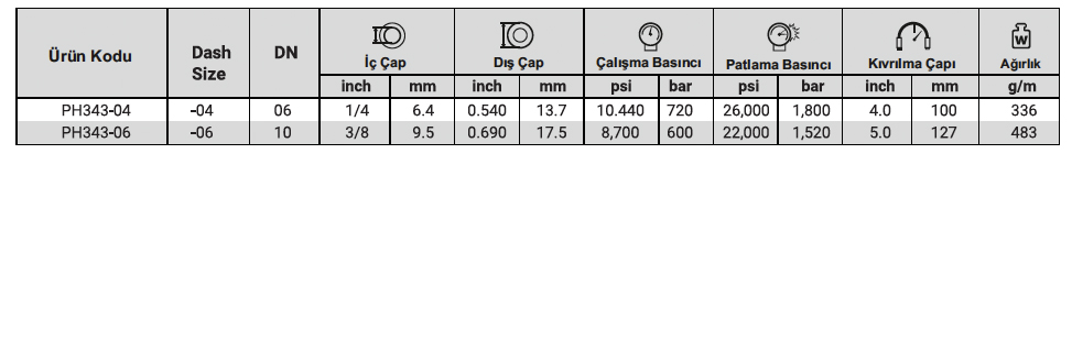 Hortum Tanımı: PH343 YÜKSEK BASINÇ BOYA HORTUMU